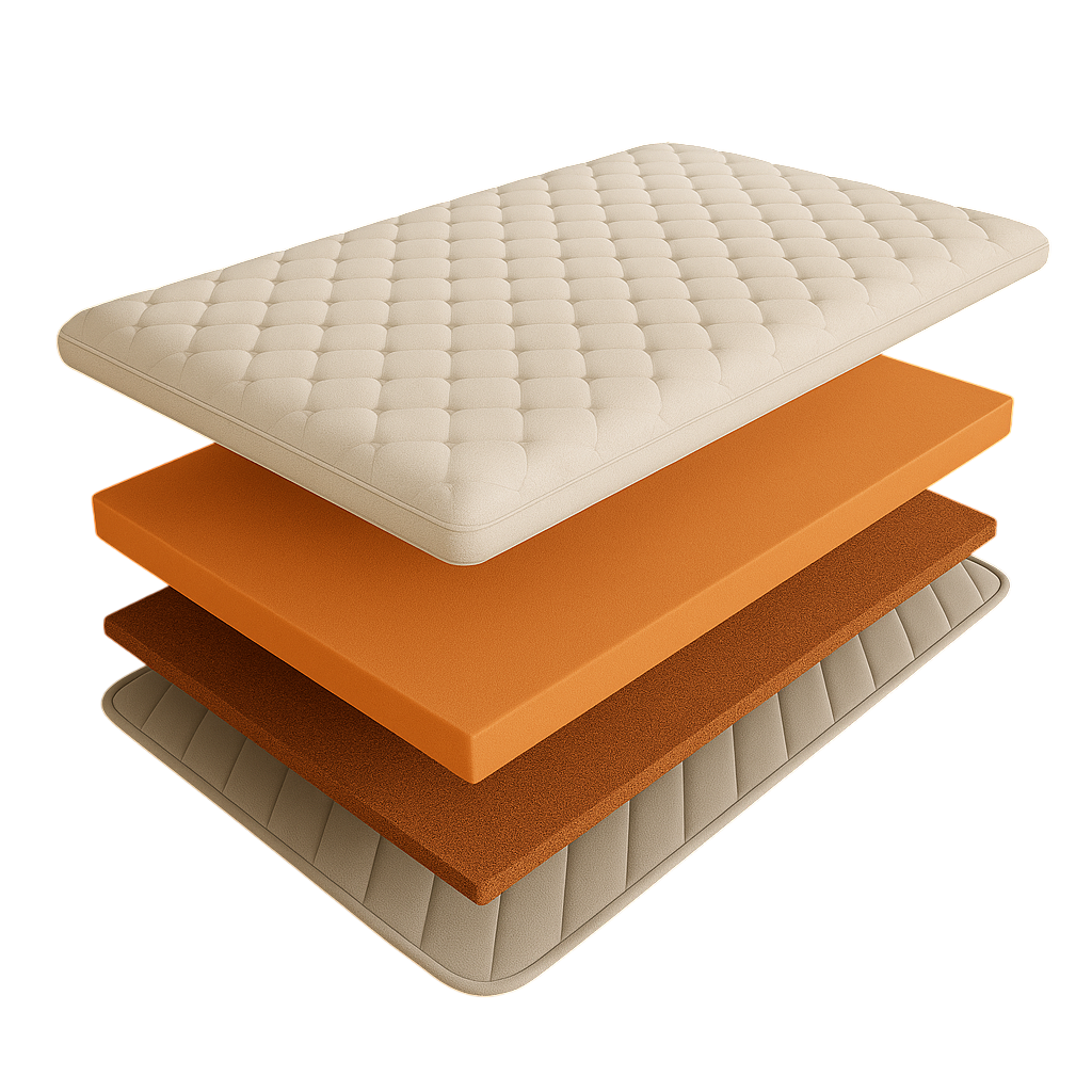 Два сантиметра кокосовой койры помогут выровнять поверхность спального места.